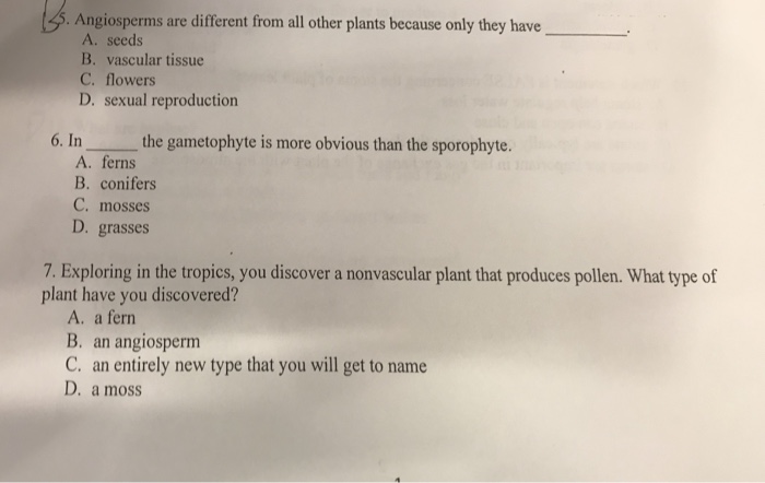 Solved Angiosperms Are Different From All Other Plants Be Chegg Com