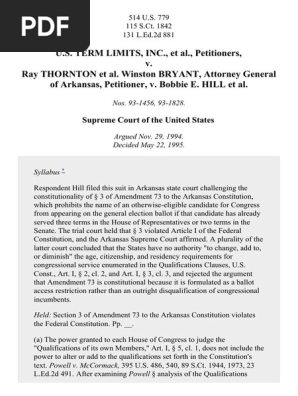 The Supreme Court Of The United States U S Term Limits V
