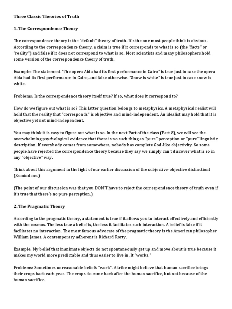 3 Theories Of Truth Pragmatic Truth Is What Works Or Serves Our