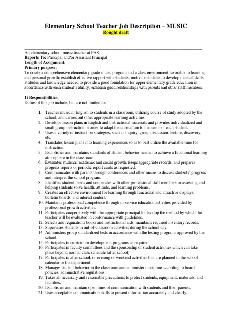 Free 12 Sample Teacher Job Description Templates In Ms Word Pdf