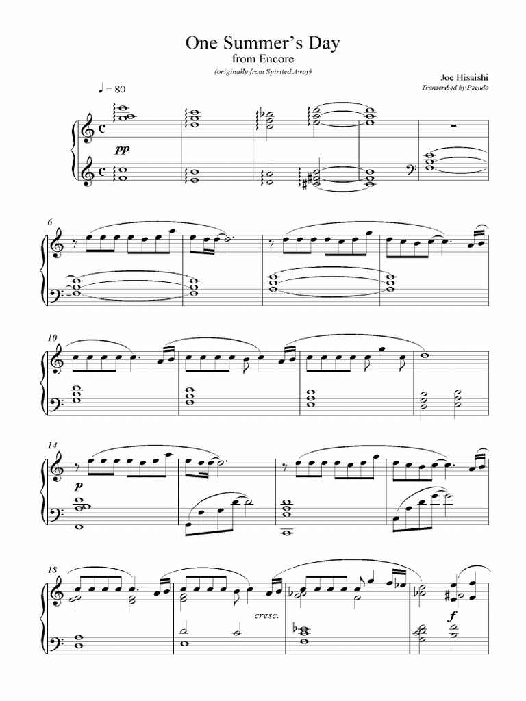 One Summer S Day Spirited Away Sheet Music For Piano Download