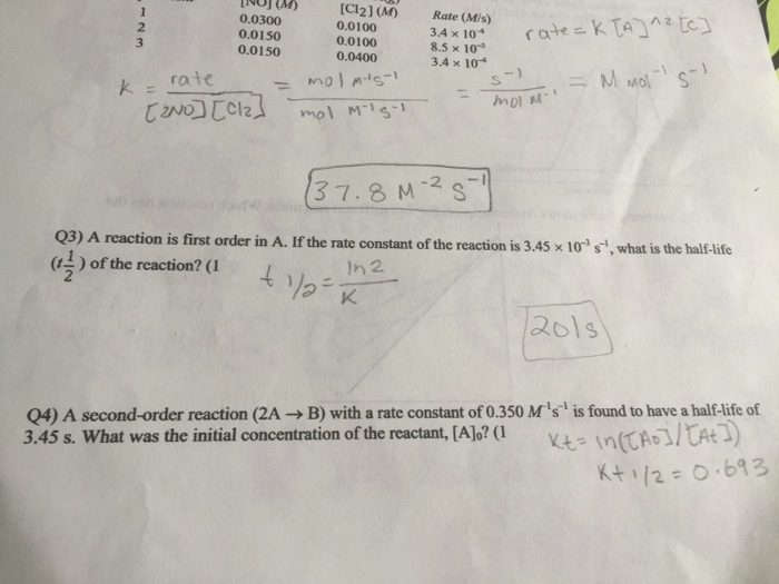O mol l s o mol l o 17s s mol l o s l mol the correct units for the rate constant in the rate law having rate k d x where time is in seconds and concentration is in mol l is omol l 15 1 ol mol 151 omol2 25 1 omol l 15 2 o l2 mol 25 1 a process was found to have a half life that depended on the initial concentration of reactant. First order reaction second order reaction zero order reaction.