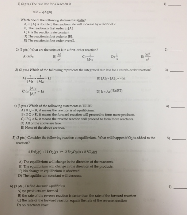 Previous question next question. Get 1 1 help now from expert chemistry tutors. Order 0th order reaction material implication rate k a 0 k unit mole sec first order reaction material implication rate k a m view the full answer.