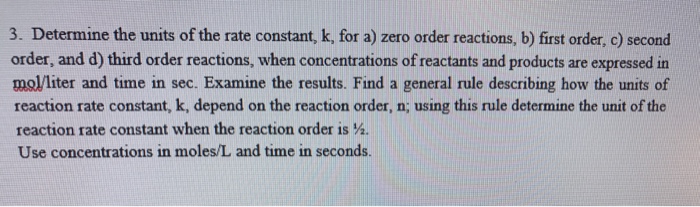 Solved 3 Determine The Units Of The Rate Constant K Fo