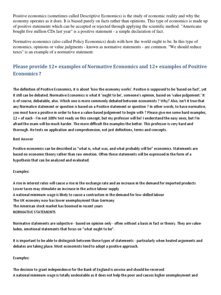 An example of a normative economic statement is. An example of a normative economic statement is as follows. In the following i summarize the characteristics of the normative statement.
