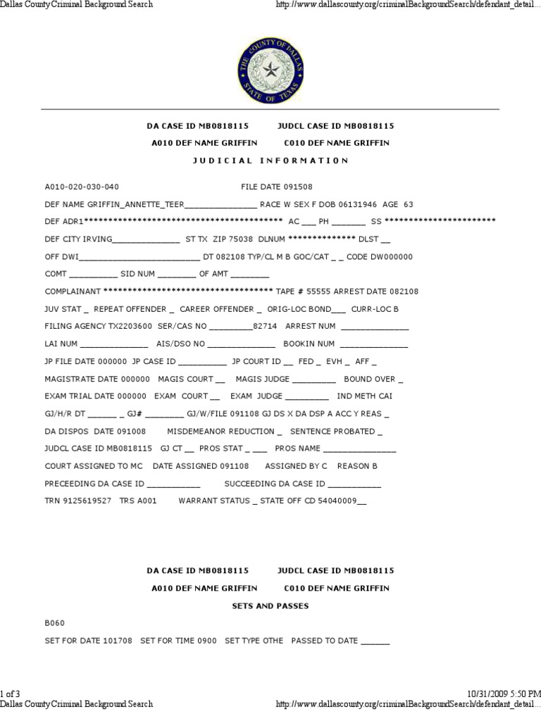 Fillable Online Dallas Dallas County Criminal Background Search