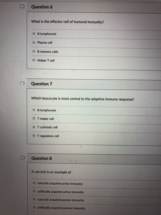 Solved D Question 6 What Is The Effector Cell Of Humoral