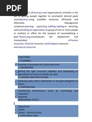 What Are The Functions Of Management Meaning And Description