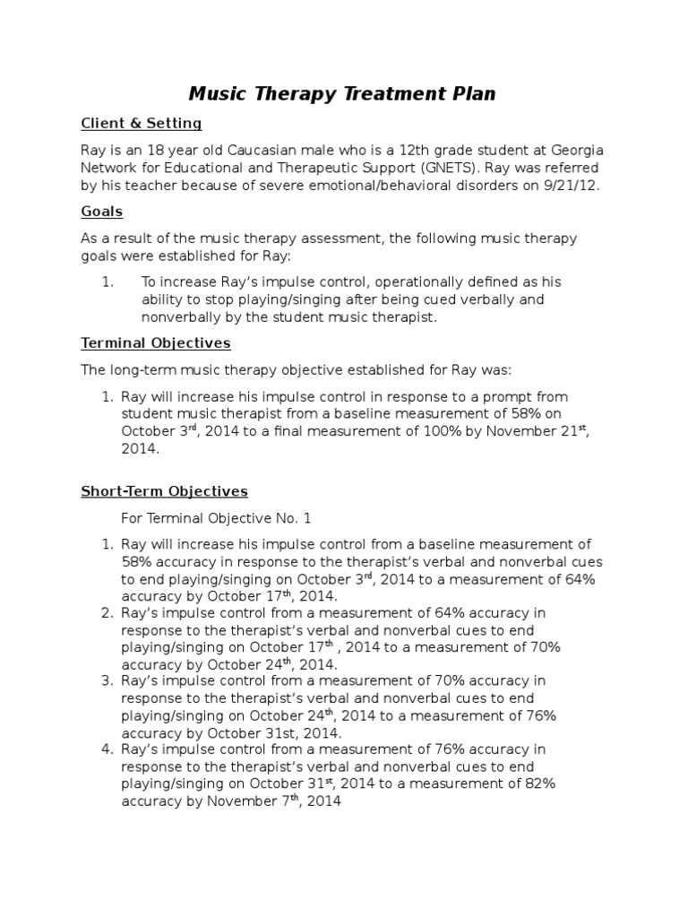 Music Therapy Treatment Plan Delayed Gratification Psychotherapy