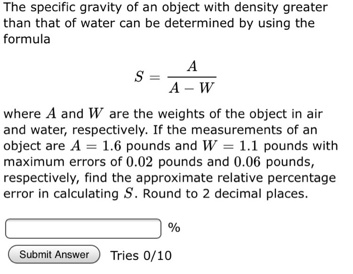 Solved The Specific Gravity Of An Object With Density Gre