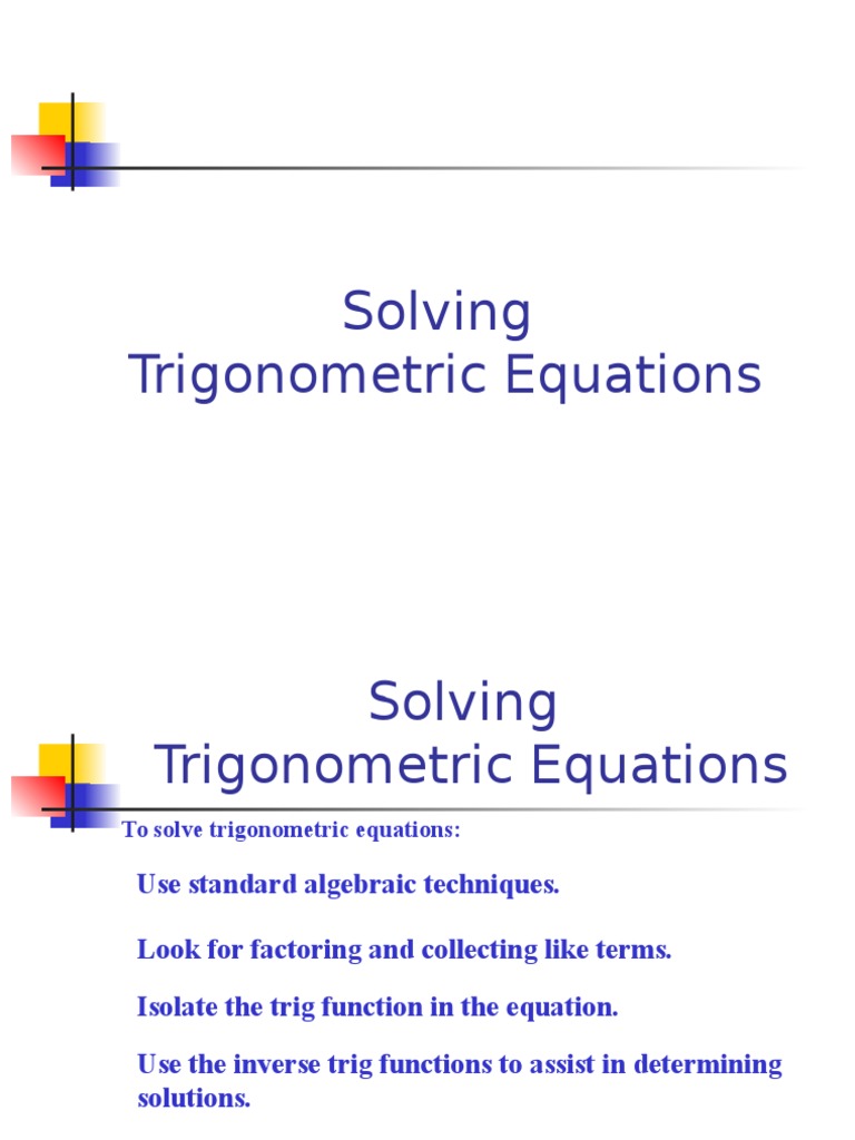 Ppt Solving Trig Equations Powerpoint Presentation Free