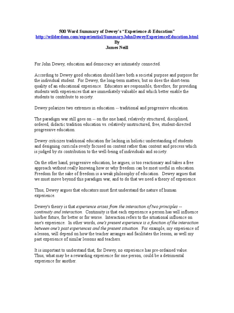 500 Word Summary Of Dewey John Dewey Philosophy Of Education