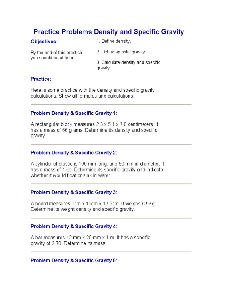 Practice Problems Density And Specific Gravity Doc