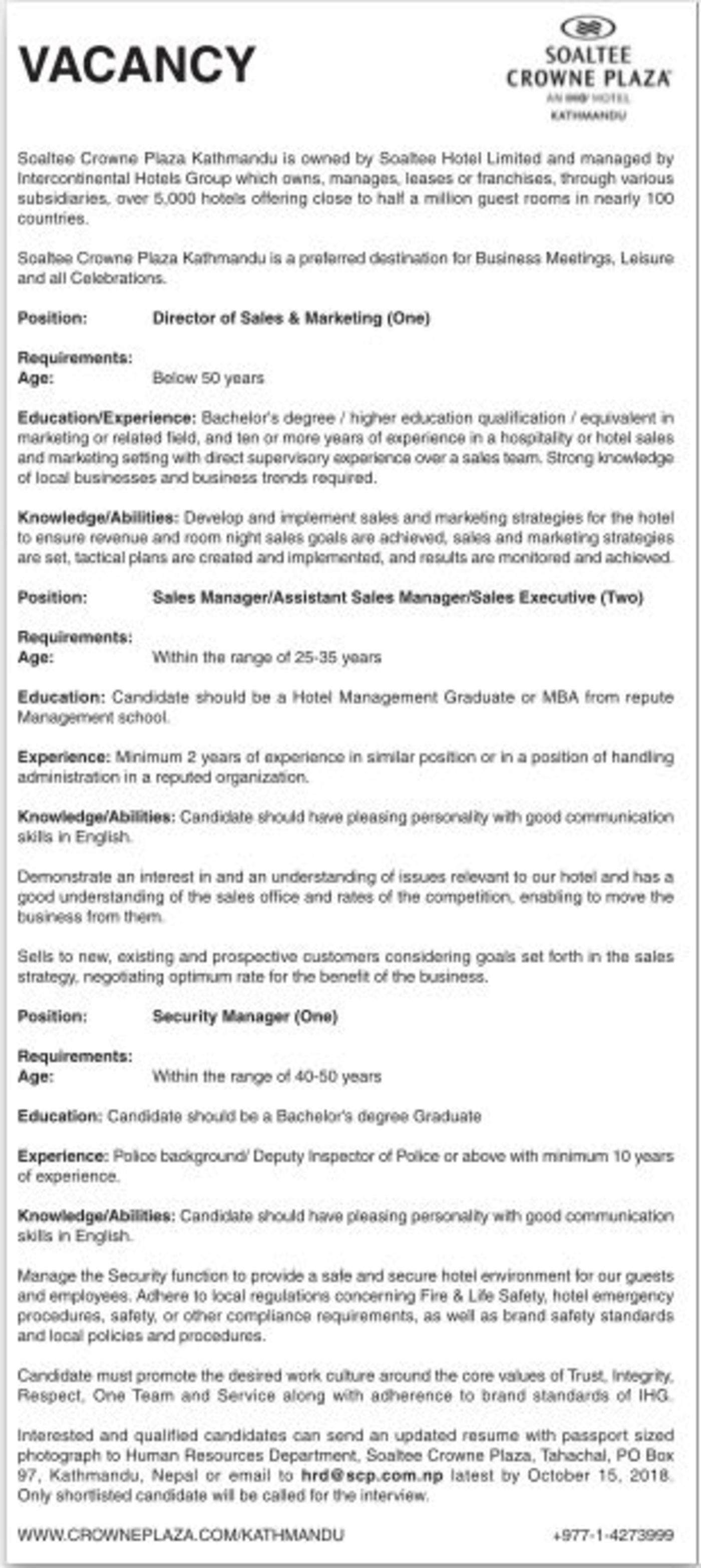 Ensure best client service is being made available through communication amongst the team cross training within the department and appropriate office coverage. They manage all of the sales activities and sales managers. The job description of a hotel sales manager involves strong interpersonal skills a background in sales marketing and management as well as an ability to responsibly manage hotel finances.