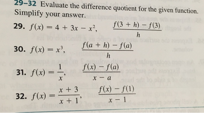 Solved 27 30 Evaluate The Difference Quotient For The Giv
