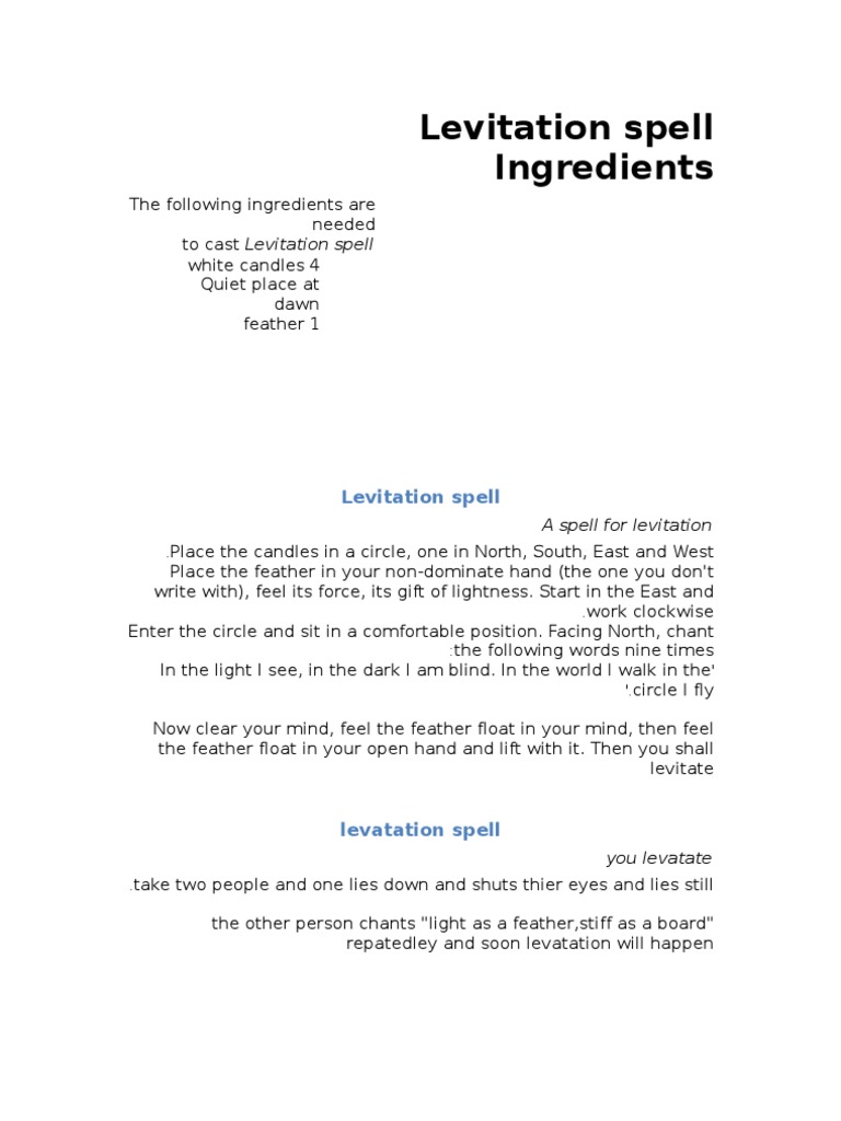 Everyone closes their eyes and let the chanting begin the most common chant is light as a feather. One two three and if everything works just right suddenly they lift their friend off the floor as if she were made of nothing but air. In performing magic this effect is known as abnormal lift.