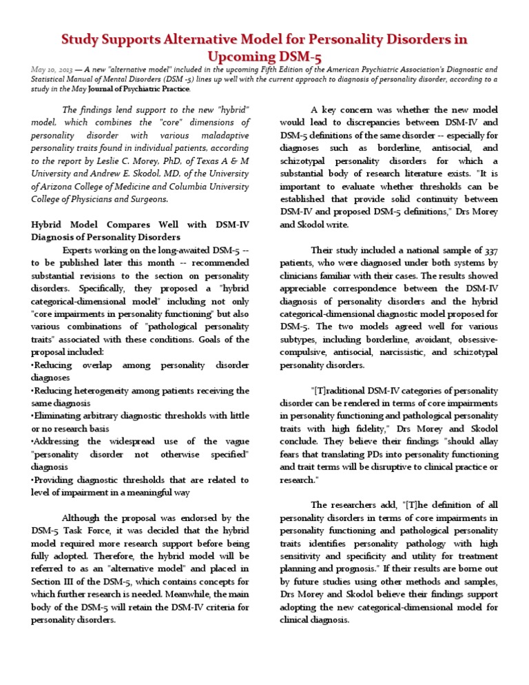 Personality Disorders In Upcoming Dsm Personality Disorder Dsm 5