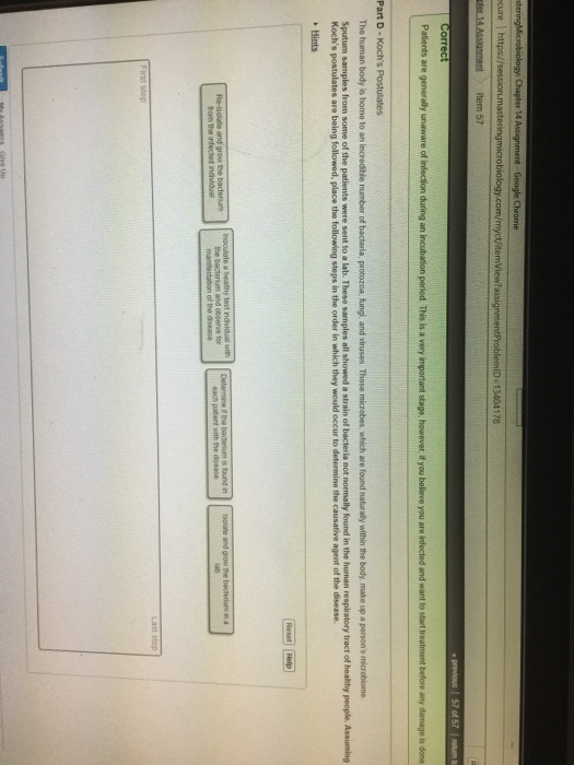 Solved Question 5 1 Pts Place The Steps Of Koch S Postula
