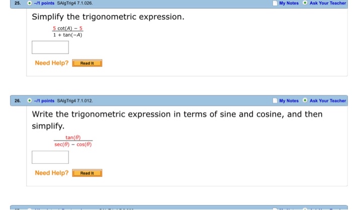 Precalculus Chapter 5 1 Exercises 22 29 Simplify Trigonometric