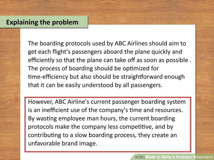 There are lots of different ways to write a problem statement some sources. Describe the ideal state of affairs.