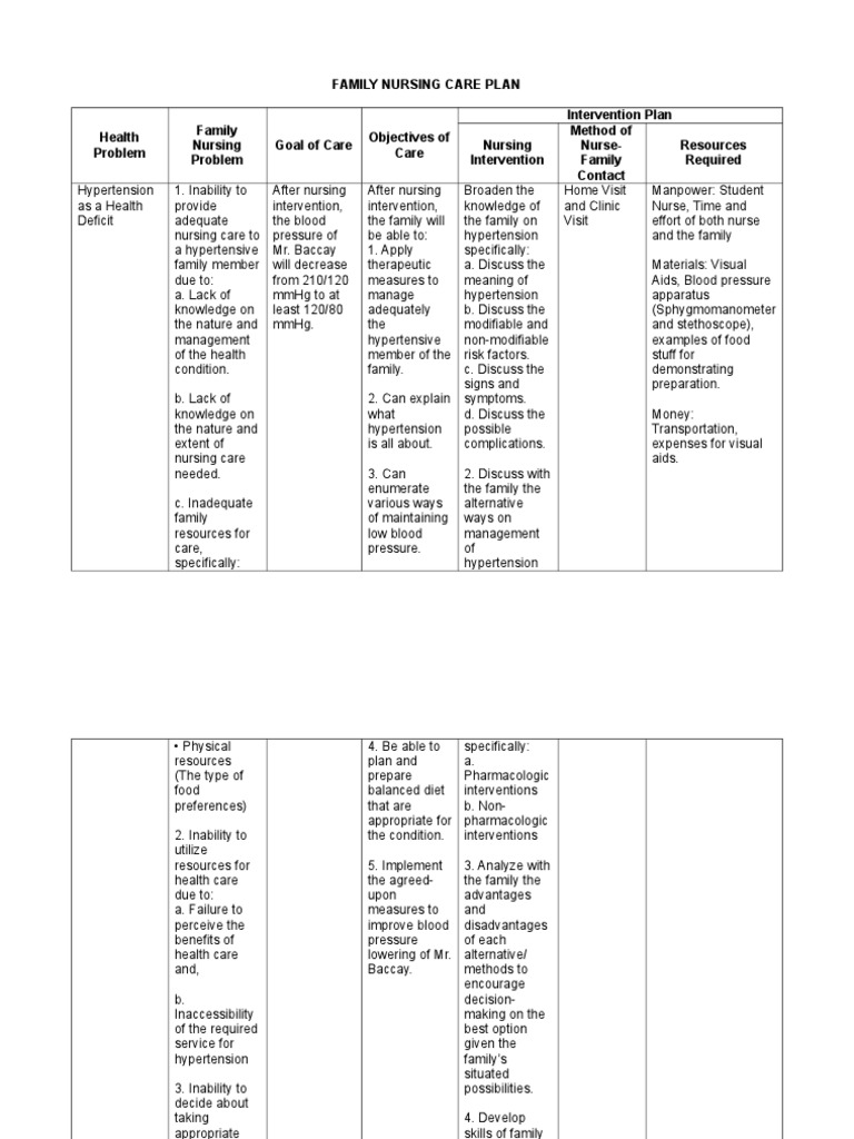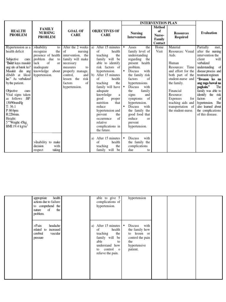 Hypertency Family Nursing Care Plan For Hypertension