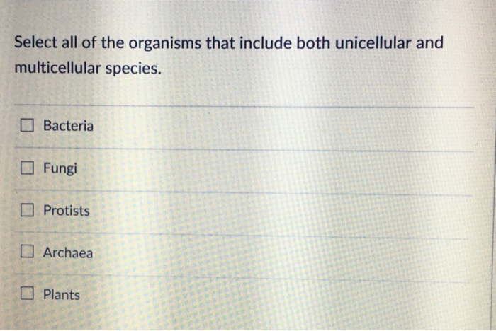 Solved Select All Of The Organisms That Include Both Unic
