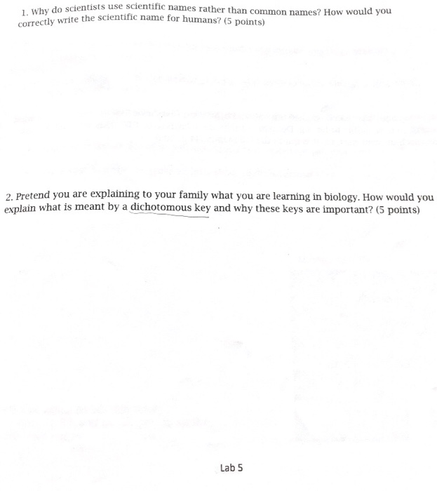 Solved 1 Why Do Scientists Use Scientific Names Rather Th
