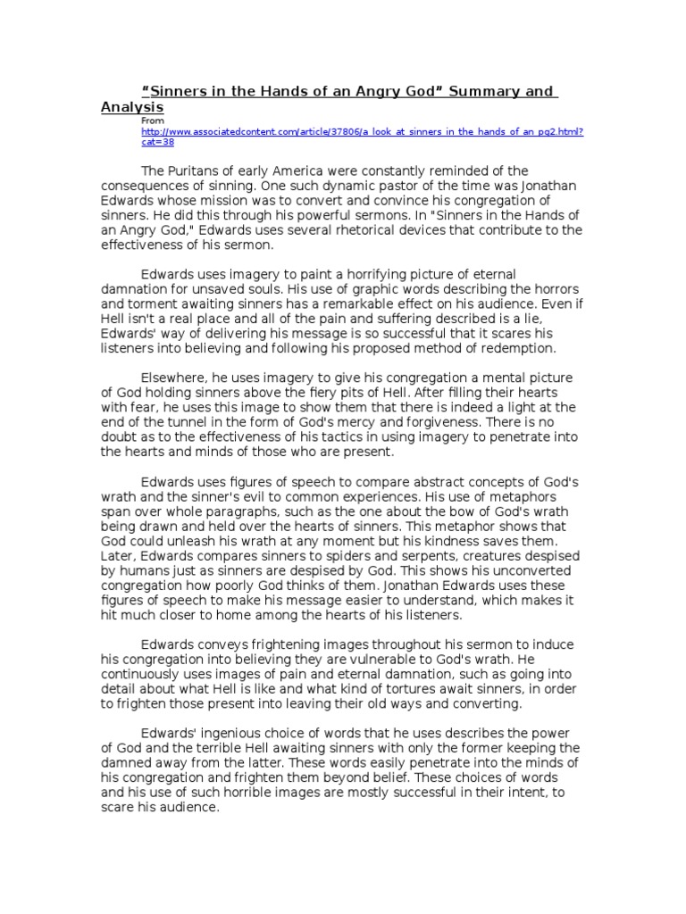 Sinners In The Hands Of An Angry God Summary Docsity
