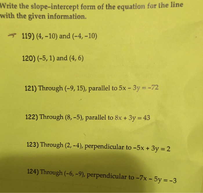 Solved Write The Slope Intercept Form Of The Equation For