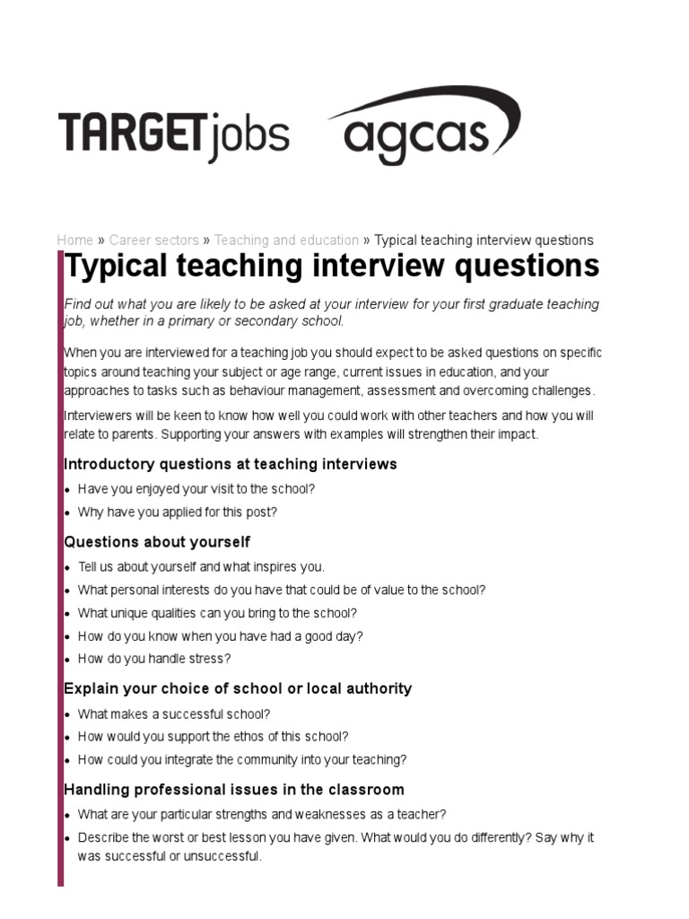Top 10 Questions Teachers Are Asked At Job Interviews Career