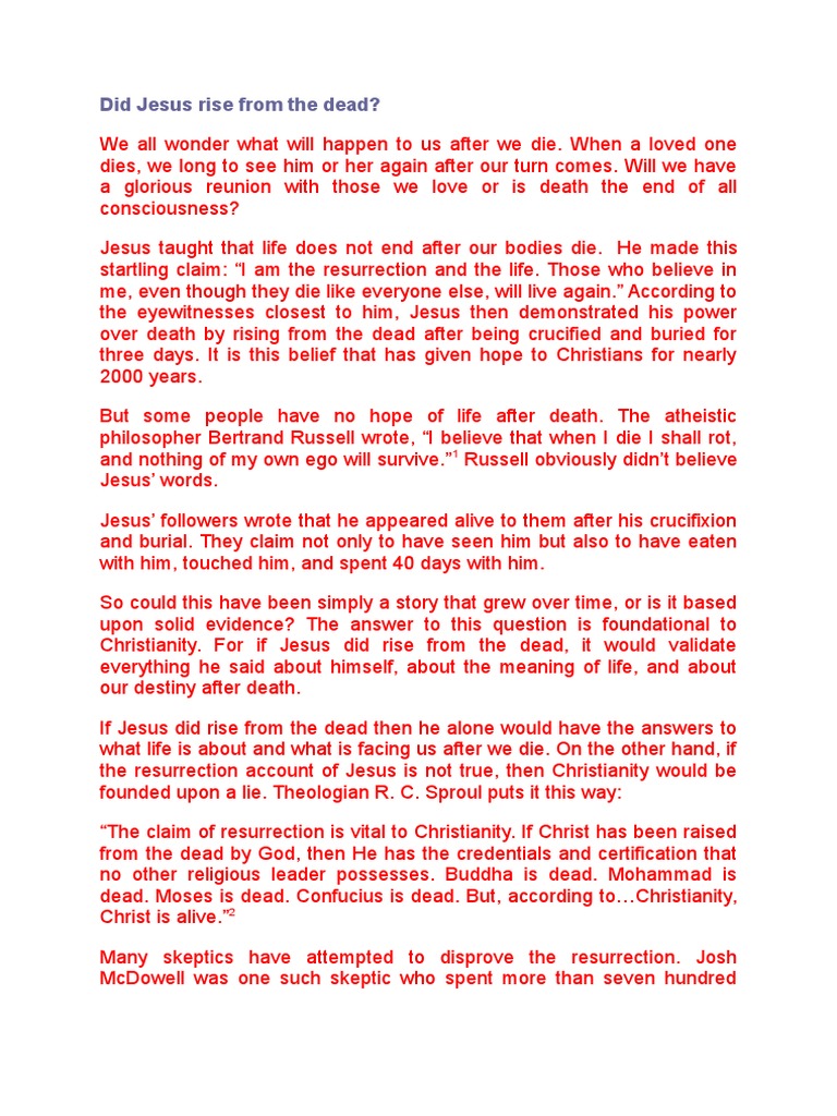 Did Jesus Rise From The Dead Doc Www Y Jesus Resurrection Of